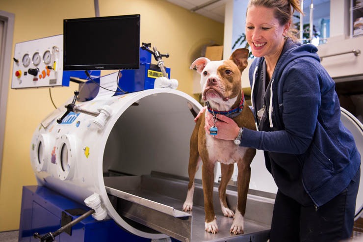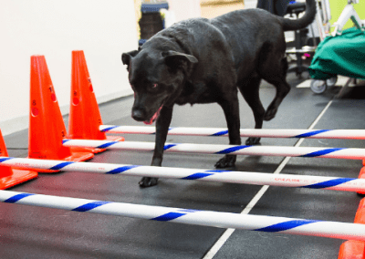 After working in the underwater treadmill, this VSCR rehab patient is doing reps of cavalettis. They are a fun part of rehab and strengthening programs